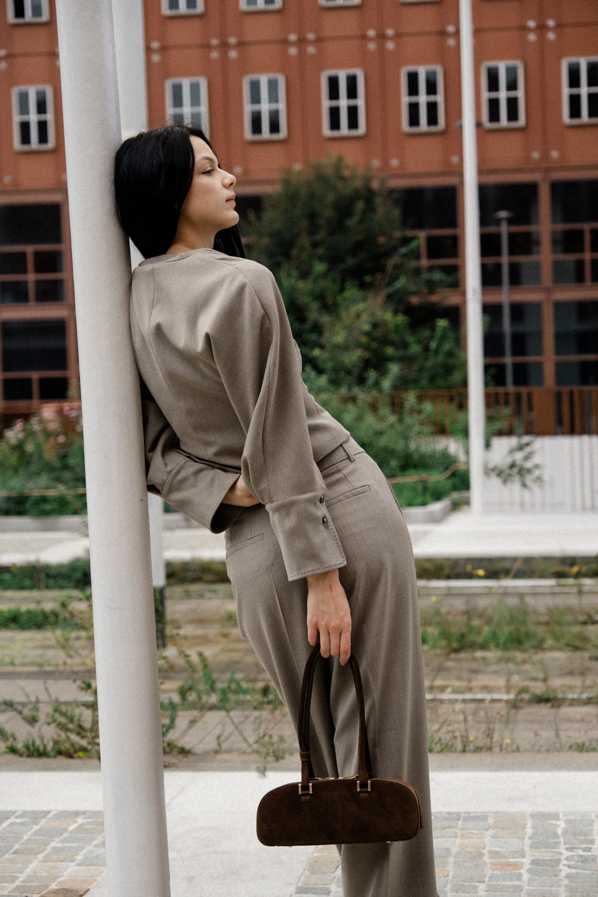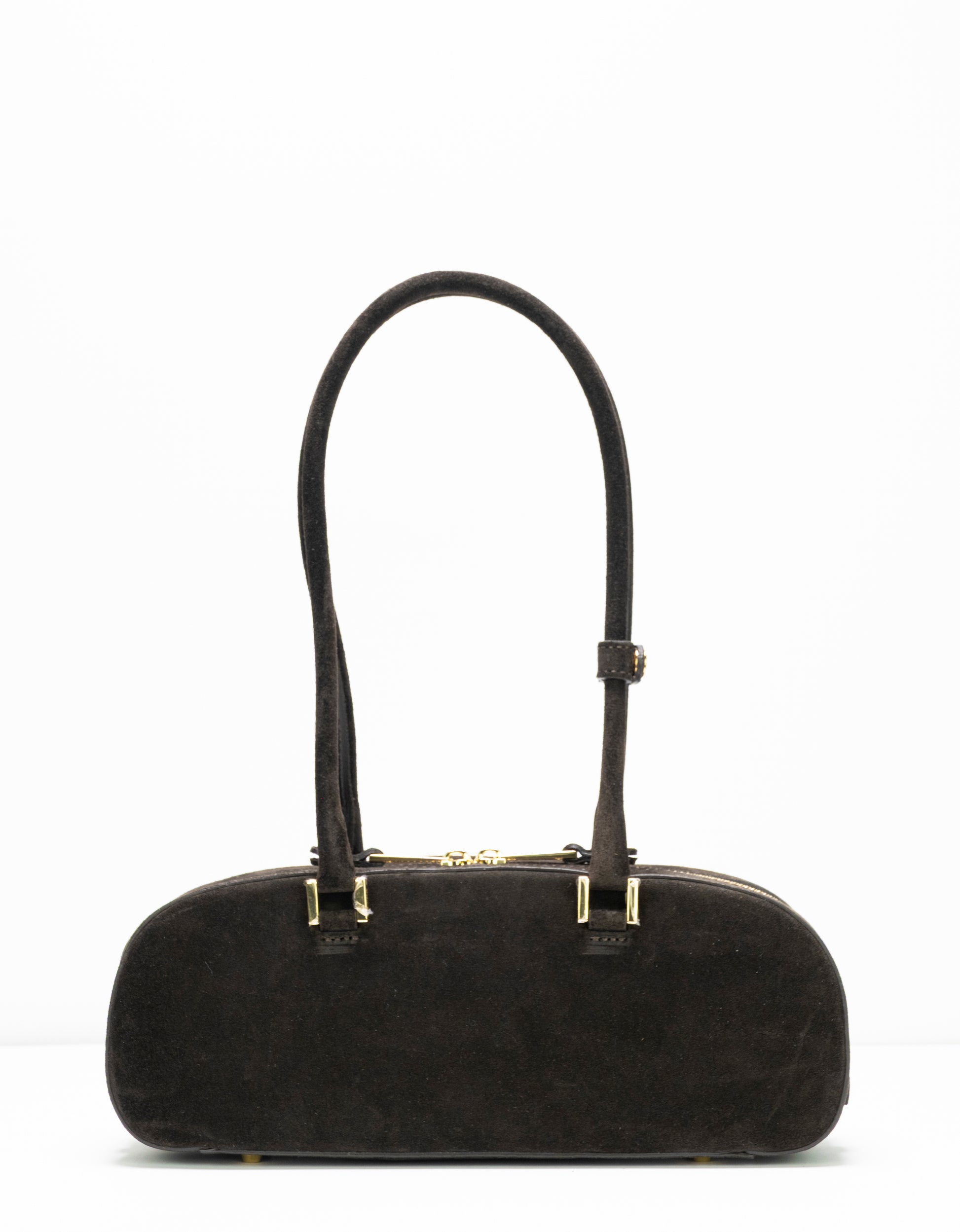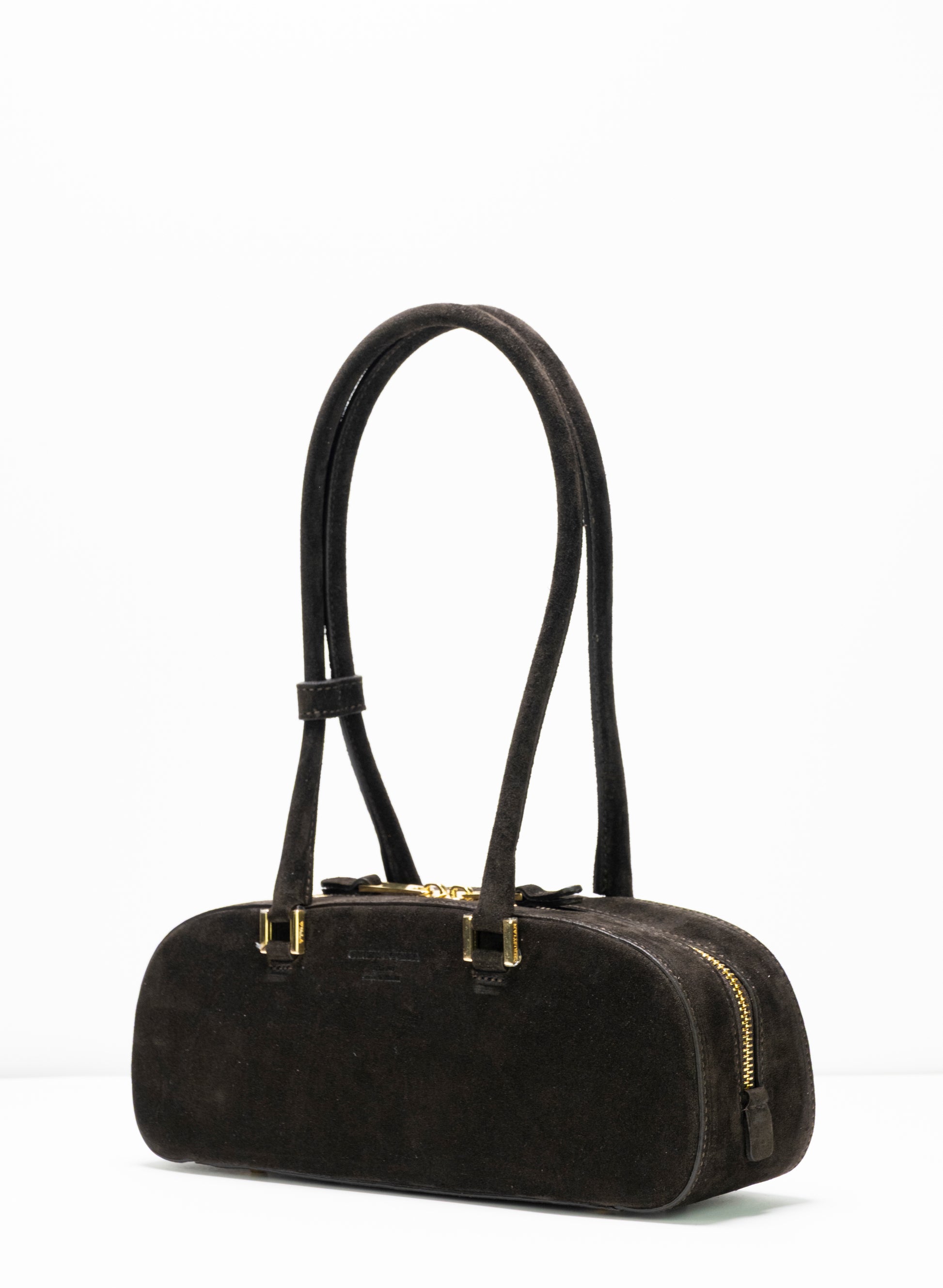 Questa borsa è realizzata in pelle scamosciata. La pelle scamosciata naturale è ricavata da pelle di vitello, levigata per ottenere una finitura vellutata. Questo processo rende il tessuto particolarmente morbido al tatto e altamente resistente.