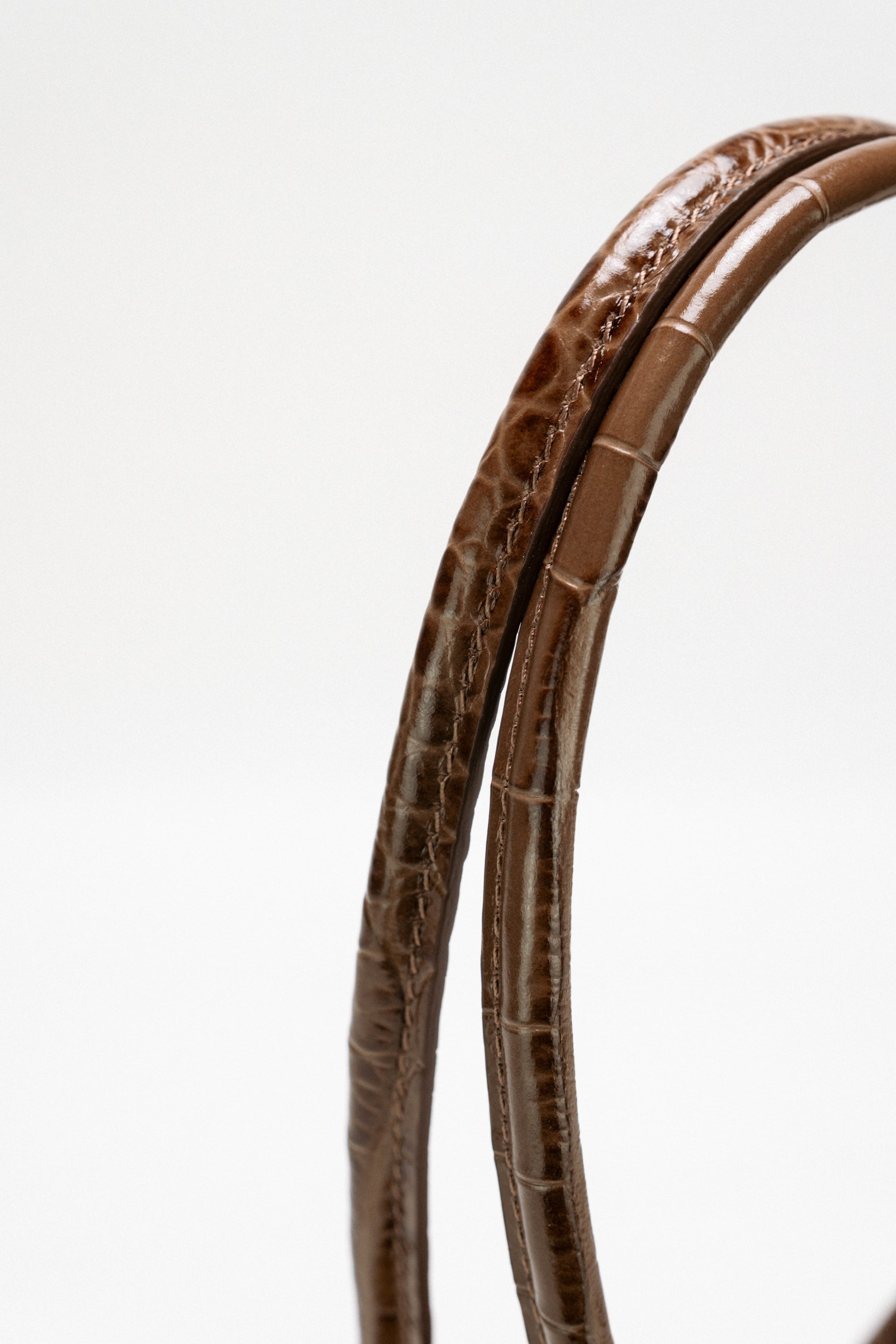 La pelle di questa borsa è chiamata "Cocco". Si tratta di una pelle bovina stampata e lucidata, progettata per imitare la pelle di coccodrillo.