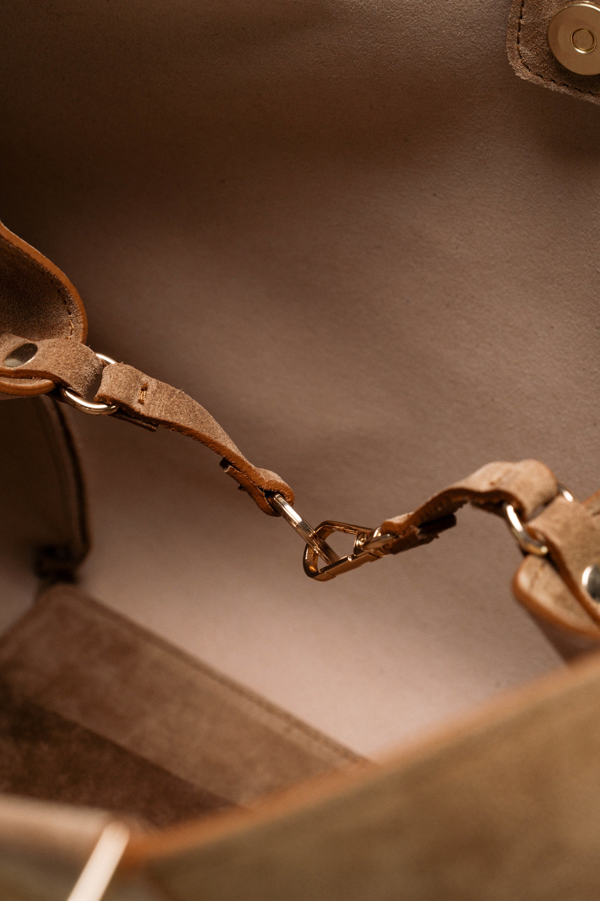 [Nuova] Athena Large Beige – Borsa in suede dal design geometrico e contemporaneo