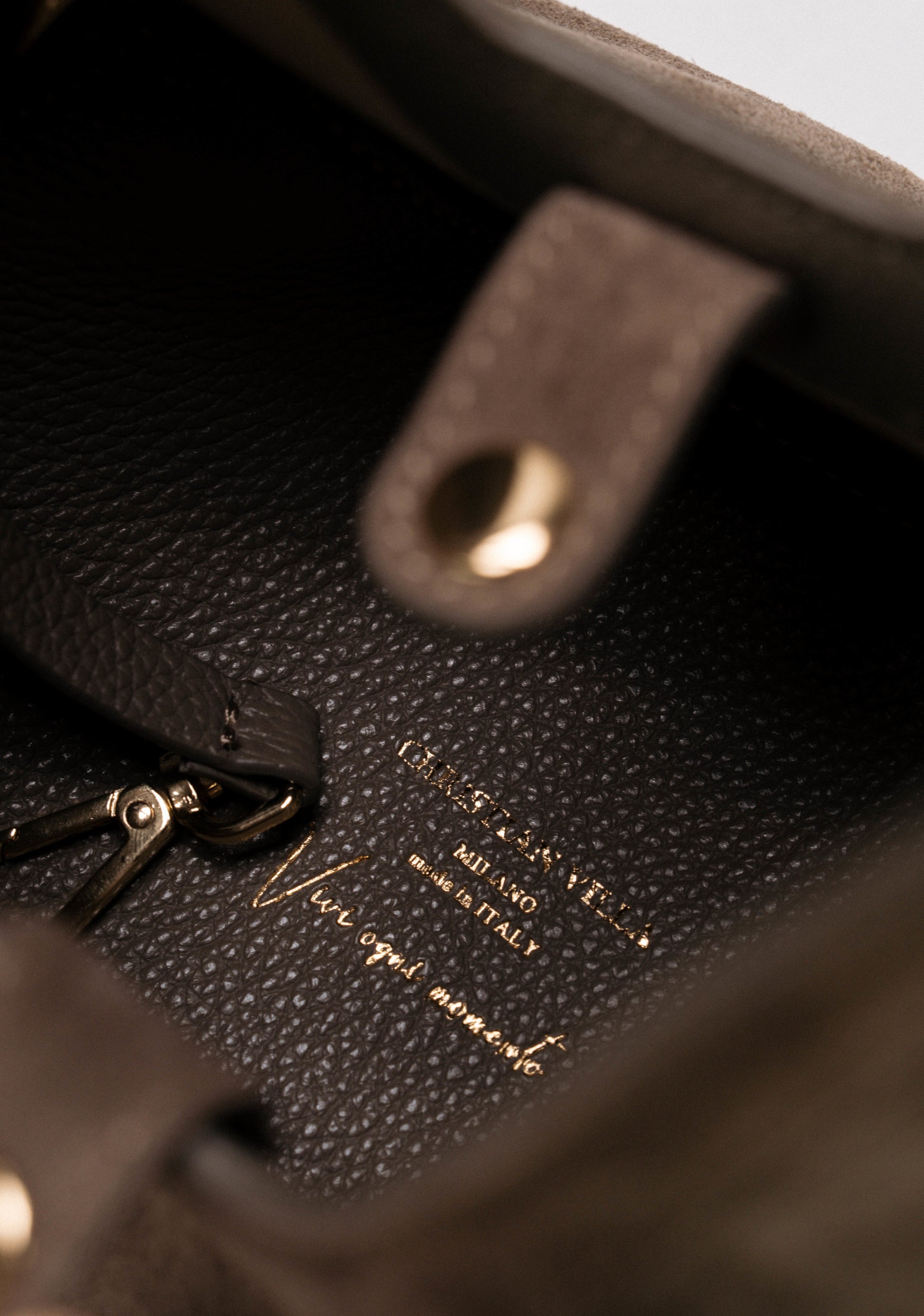 Microfibra beige e accessori dorati