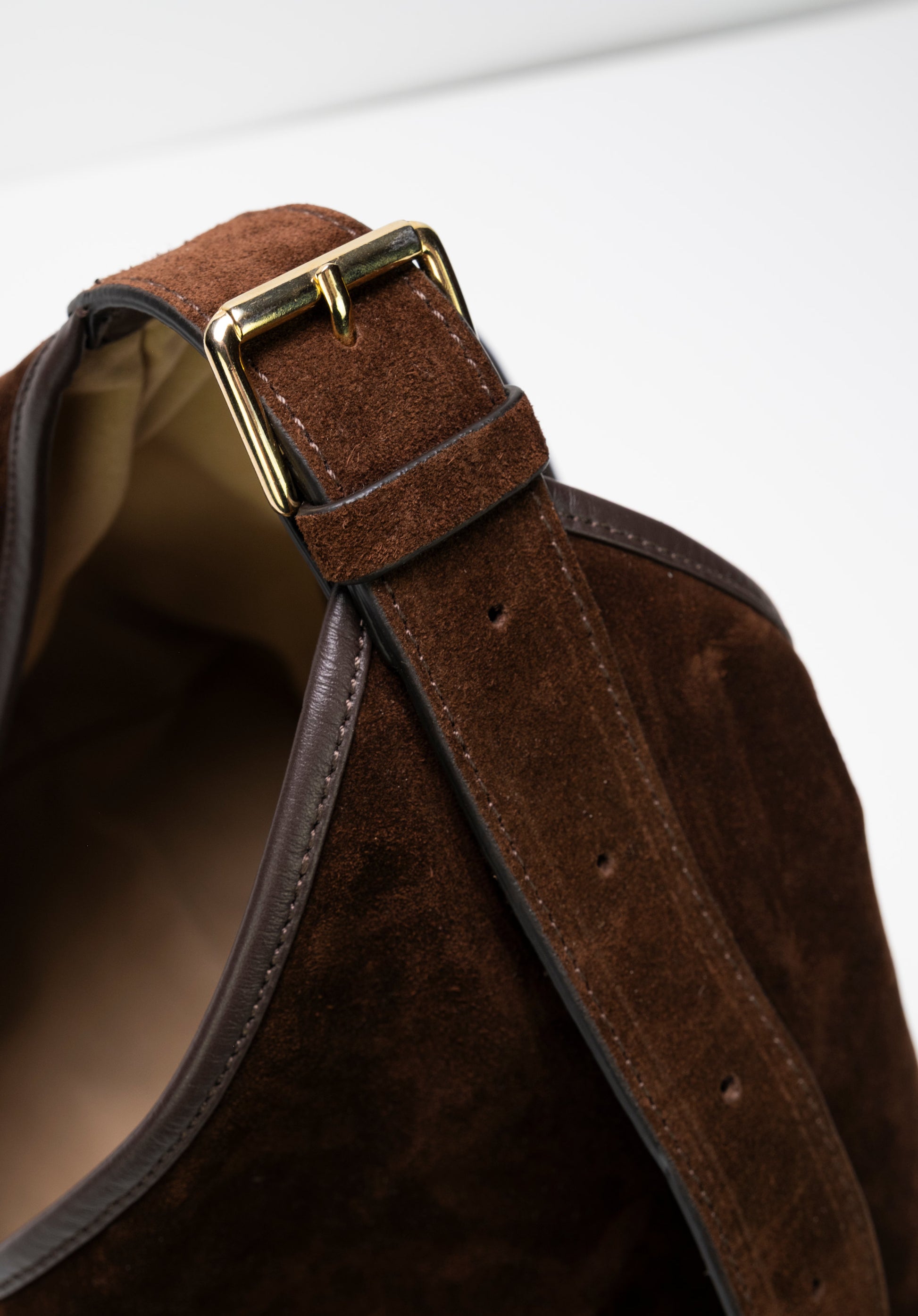 This bag is made of suede. Natural suede is created from calf leather, which is sanded to achieve a velvety finish. This process makes the fabric particularly soft to the touch and highly durable.