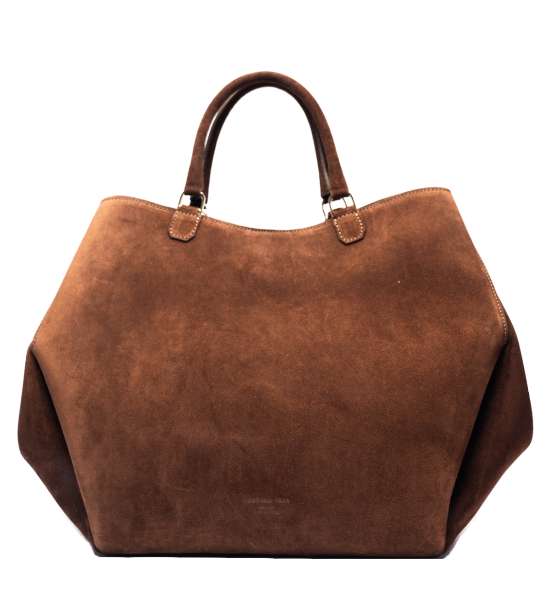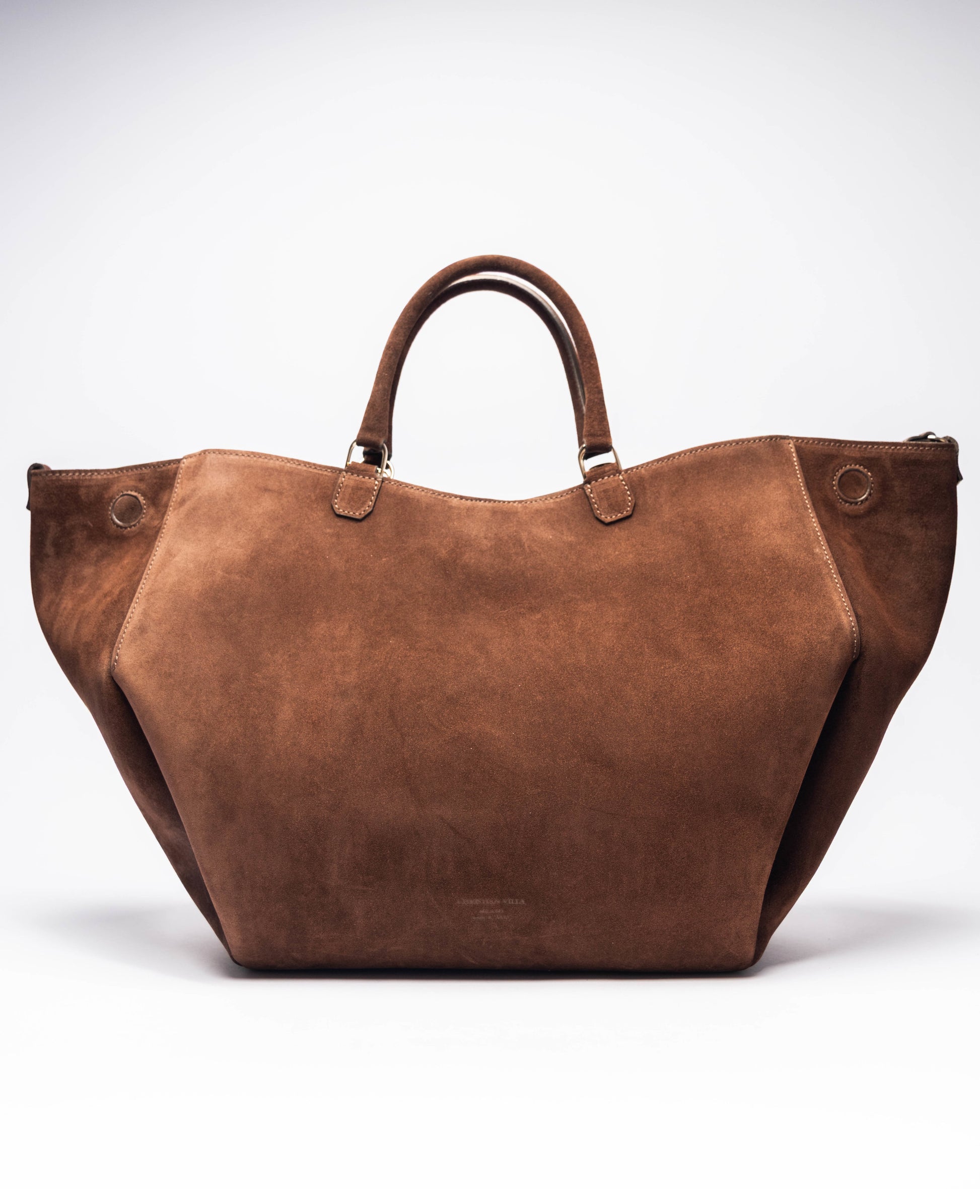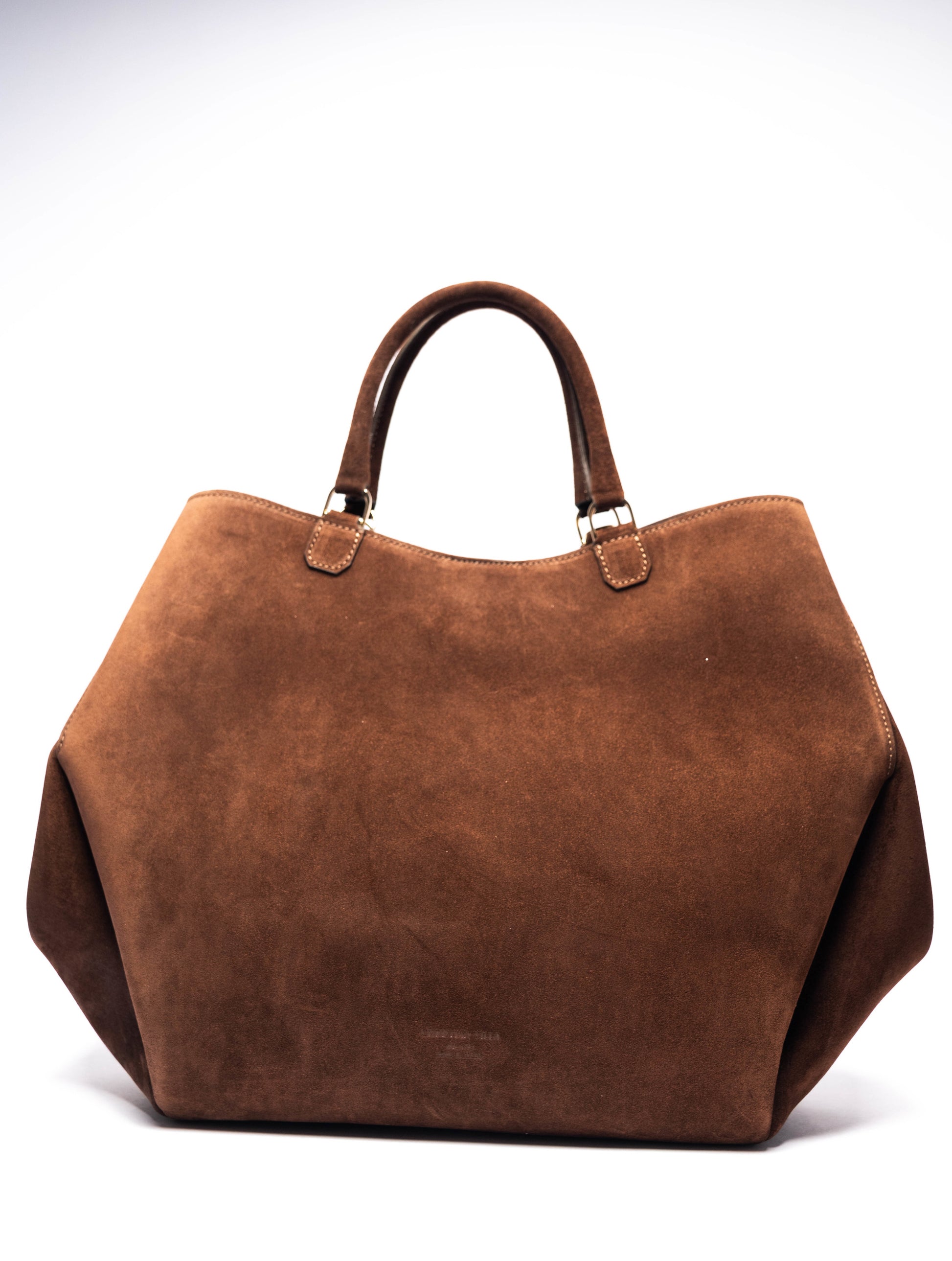 【新商品】アテナ ラージ チョコレート – 幾何学模様のスエードバッグ