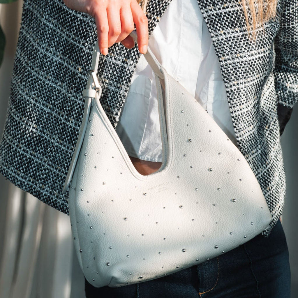 [New] Alma Small White Studs – A lightweight leather bag with modern elegance