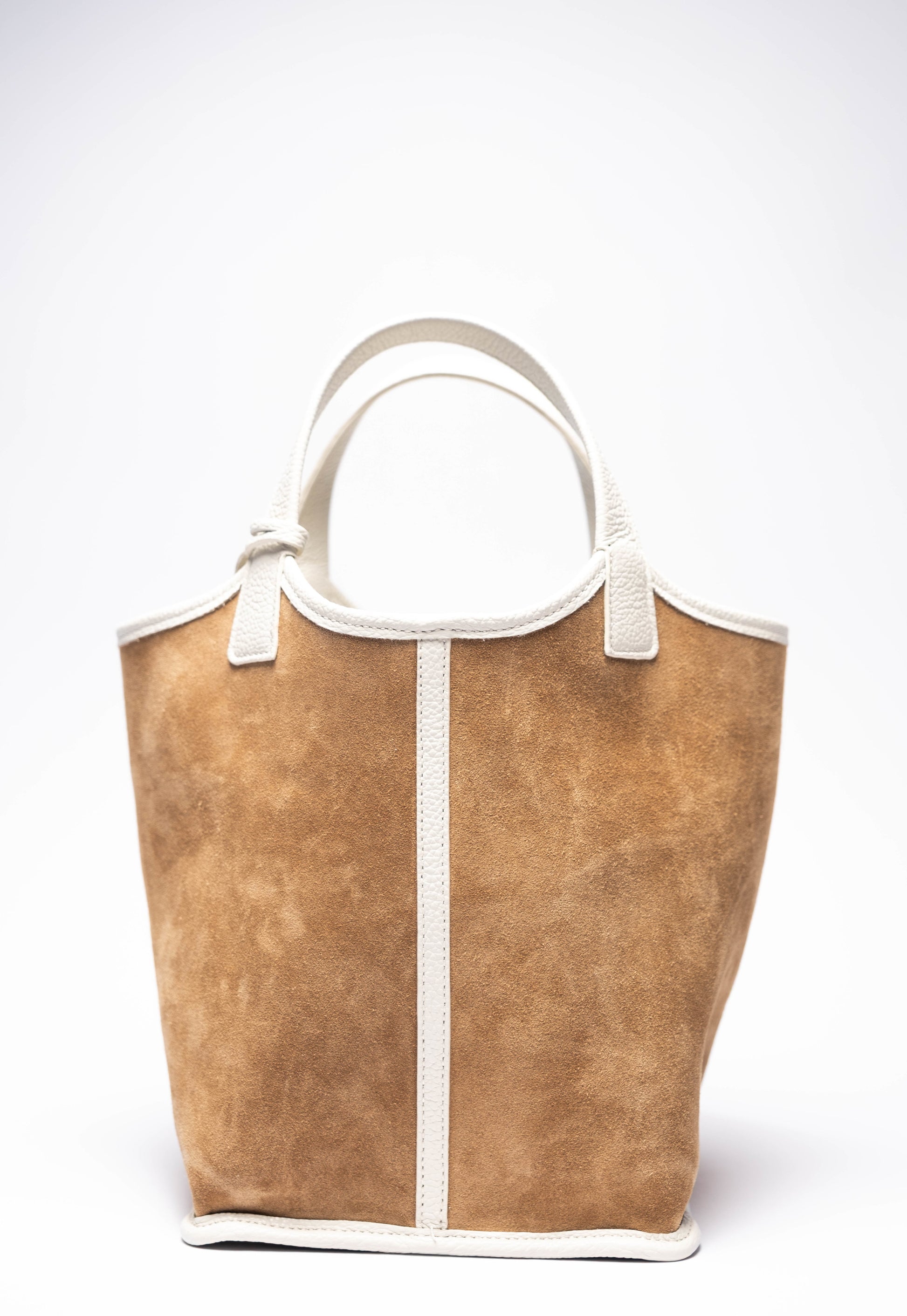 [New] Sara Medium White & Beige Suede - Reversible Tote bag