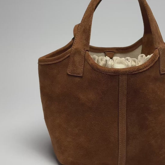 [New] Sara Small Natural & Brown Suede- Reversible Tote bag